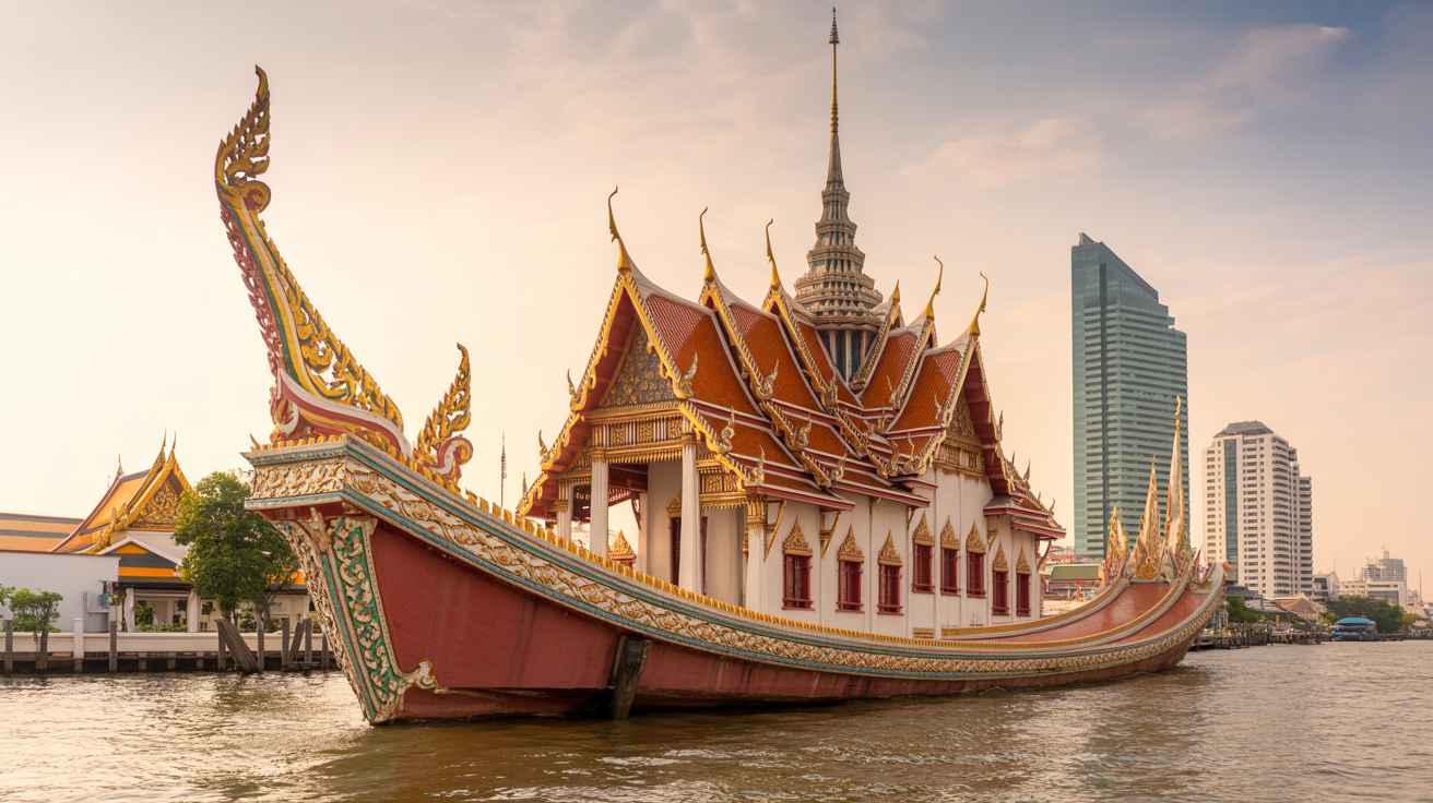 - Chùa Thuyền Watyanawa hay còn gọi là Chùa Xá lợi – Một trong những ngôi chùa linh thiêng nhất của Thái Lan với hình thiền được xây dựng theo kiểu kiến trúc cấu trúc trang trí con thuyền cùng với kiến trúc Thái là các thoải cao vút mang đậm phong cách thời Ayuthaya ngay cạnh dòng sông mẹ Chaophraya.