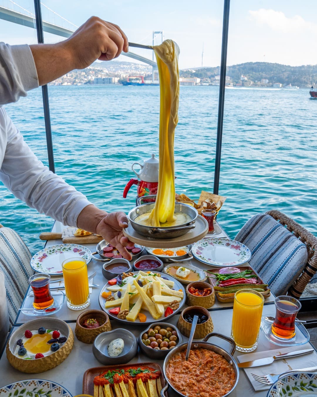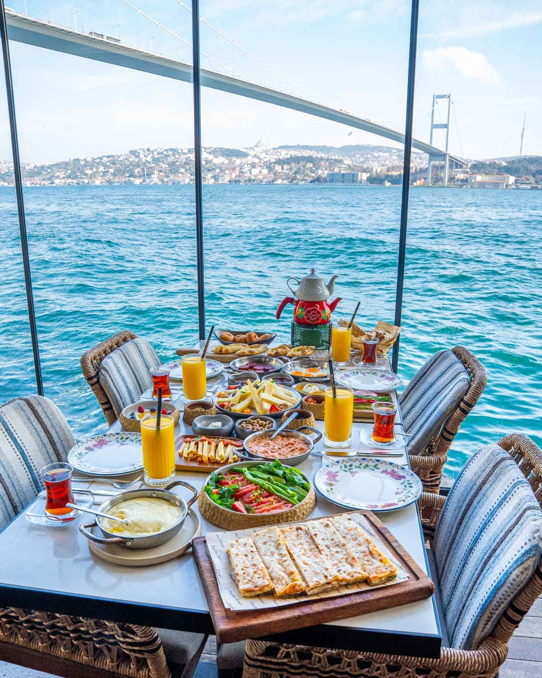 Không gian sang trọng, view đẹp nhìn ra Bosphorus – cực kỳ lý tưởng cho du khách.Trải nghiệm bữa sáng – “đặc sản tinh thần” khi du lịch Thổ Nhĩ Kỳ
