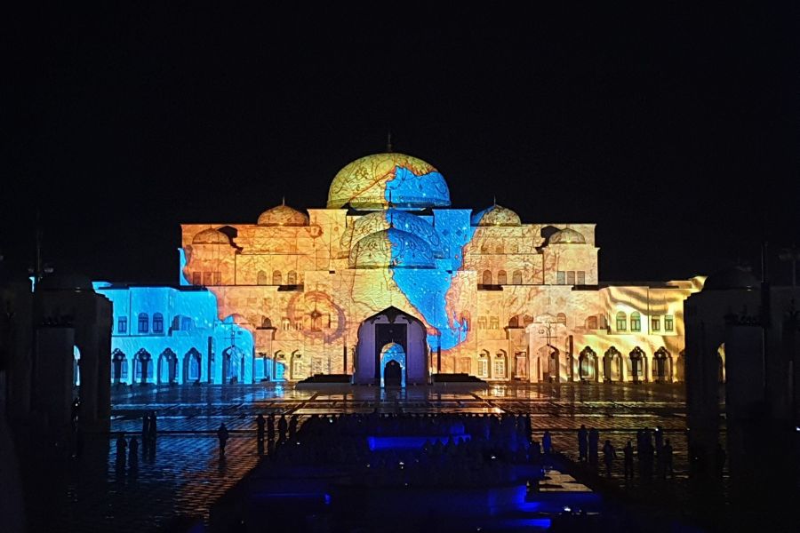 “Và khi màn đêm buông xuống, Qasr Al Watan trở nên rực rỡ hơn bao giờ hết với show ánh sáng 3D mang tên Palace in Motion.