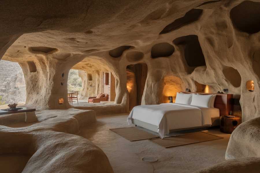 Những khách sạn được tạo nên 100% từ đá tự nhiên, mỗi căn phòng đều được thiết kế đầy đủ tiện nghi như 1 khách sạn 5 sao.