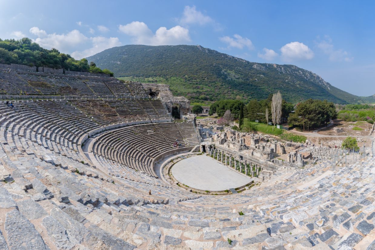 Đứng trước thư viện này, nhiều du khách nhận ra rằng du lịch Thổ Nhĩ Kỳ không chỉ là ngắm cảnh, mà còn là hành trình khám phá chiều sâu tri thức nhân loại.2. Nhà hát lớn Ephesus – Công trình của quyền lực và nghệ thuật