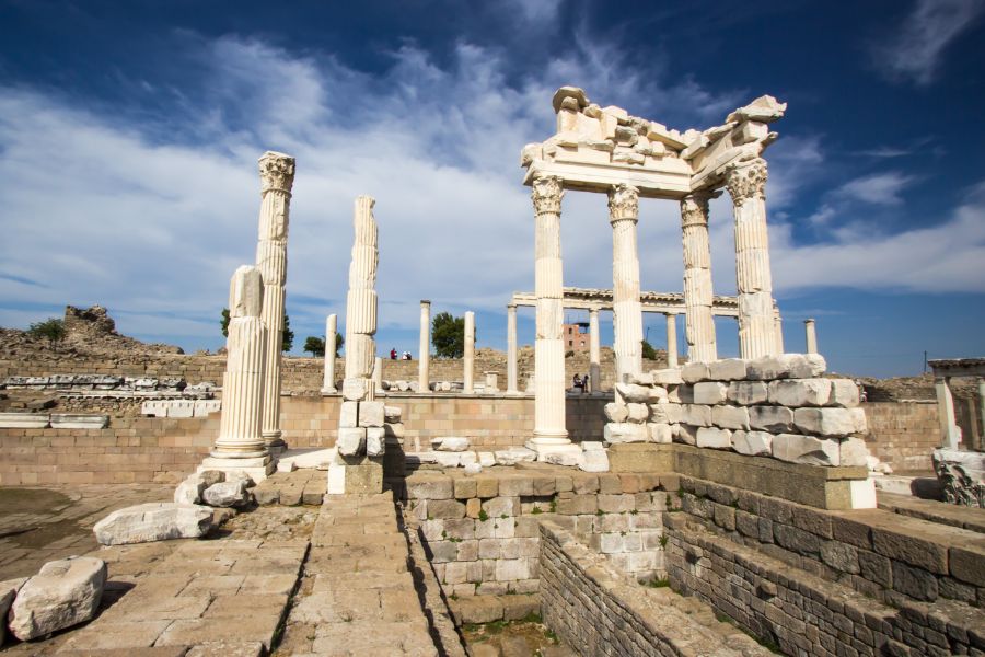 Những con đường đá cẩm thạch vẫn còn nguyên dấu vết bánh xe ngựa, minh chứng cho một đô thị từng vô cùng sầm uấtĐi bộ giữa những tàn tích cổ xưa, bạn sẽ dễ dàng hình dung về một thành phố từng náo nhiệt với thương nhân, học giả và người hành hương từ khắp nơi đổ về.Pergamon – Trung tâm tri thức và y học cổ đại