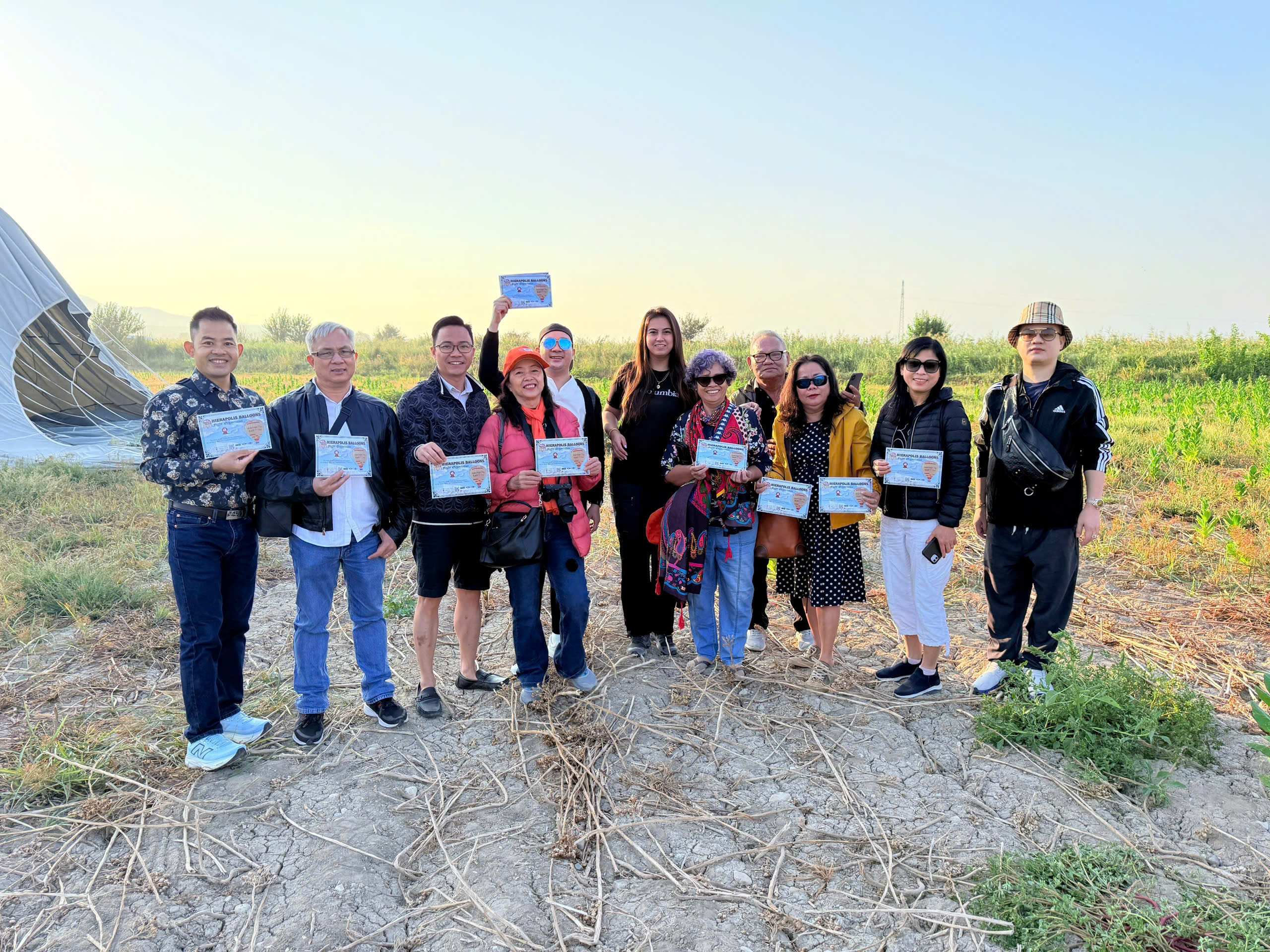 Sau đó khinh khí cầu sẽ dừng tại một điểm tập trung và du khách có thể tham gia một party nho nhỏ với bánh và rượu champagne, và được trao chứng nhận Certificate như một món quà lưu niệm đánh dấu mình đã đặt chân tới Cappadocia (chi phí tự túc)