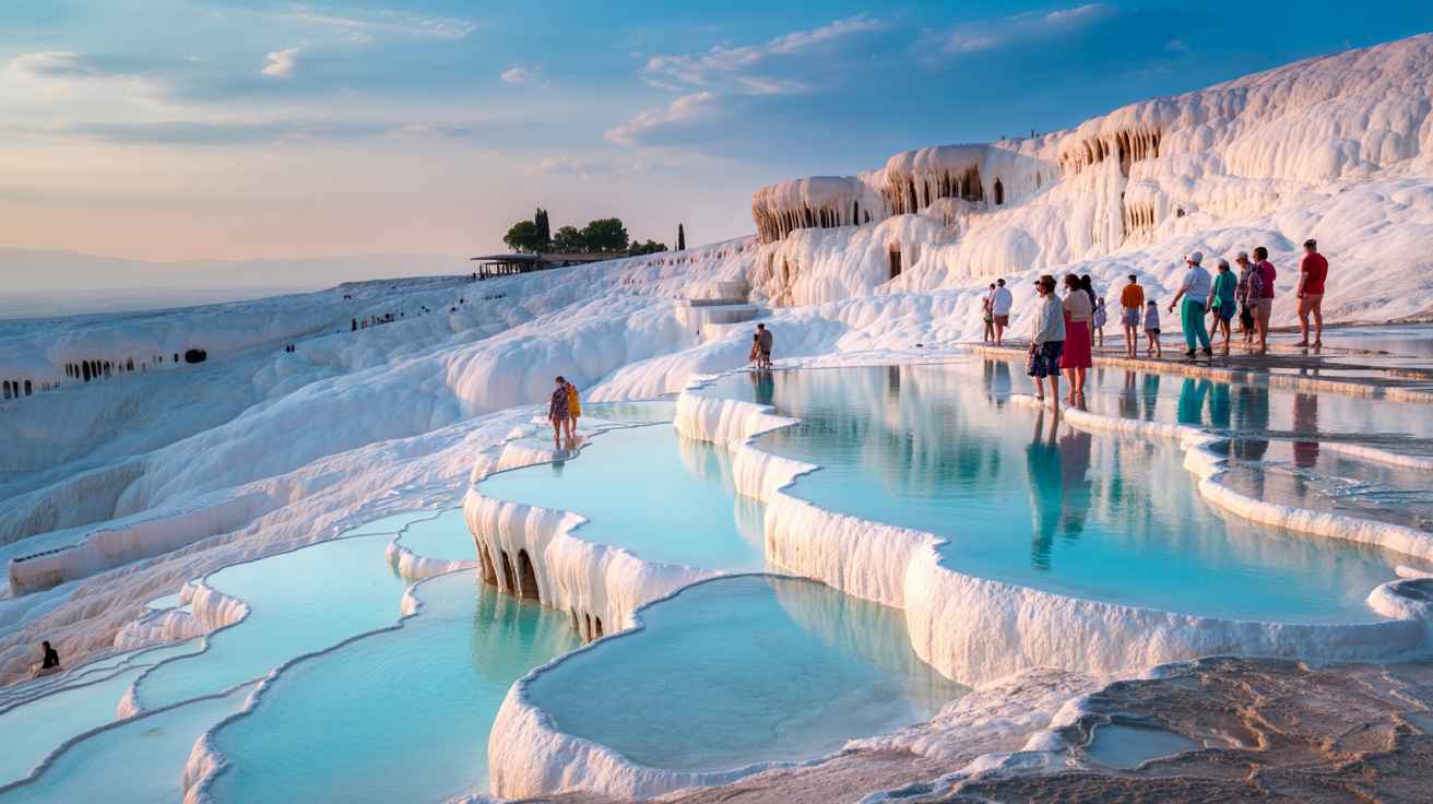 Lâu đài Bông Pamukkale: Một di sản thiên nhiên thế giới, nơi có những dòng suối khoáng nóng chảy tự nhiên lộ thiên từ hàng ngàn năm trước tạo nên một kỳ quan vô cùng kì vĩ và độc đáo, cũng được UNESCO công nhận là di sản văn hóa thế giới.